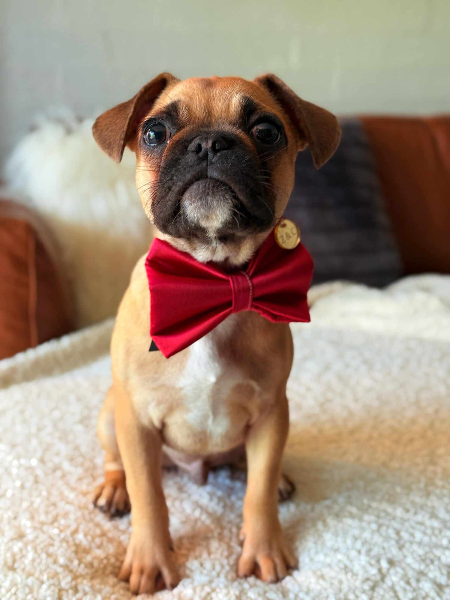 We have two luxurious fabrics for you to choose from. Valentina is our pretty pink velvet available in the cutest bandana; featuring a darling pearl heart patch. Then there is Cupid, our silky red satin available in a Bow Tie and scrunchie (so you and your pooch can match, of course!).